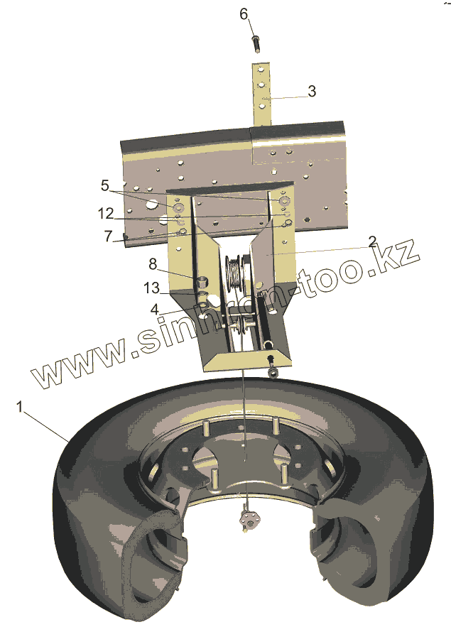 Каталог запасных частей к технике: МАЗ-631019. Установка запасного колеса 6310Е9-3100001