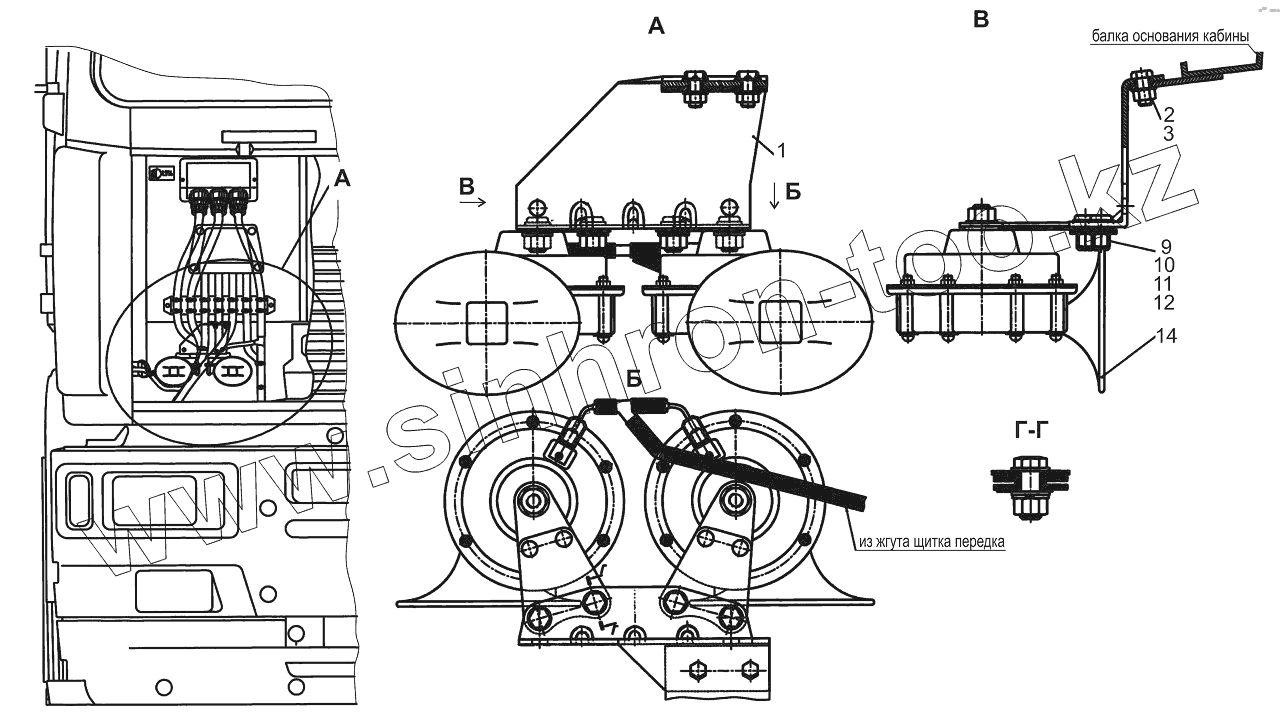 Каталог запасных частей к технике: МАЗ-631019. Установка звуковых сигналов 544008-3700024, (-700)