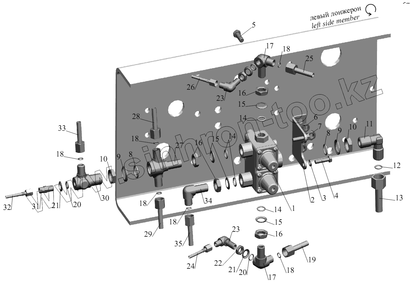 Каталог запасных частей к технике: МАЗ-631236. Крепление четырехконтурного клапана