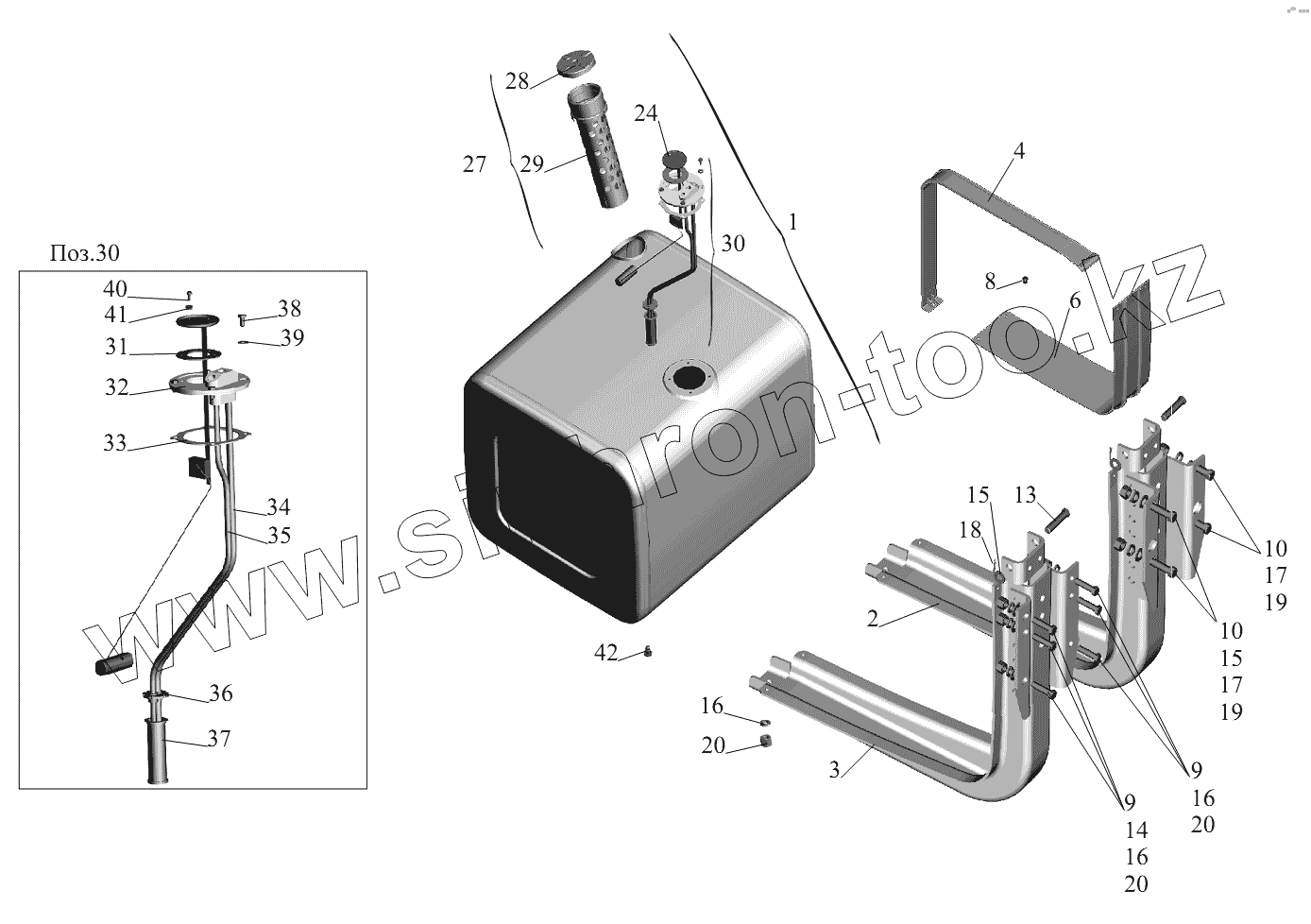Каталог запасных частей к технике: МАЗ-631236. Крепление топливного бака 631236-1101002