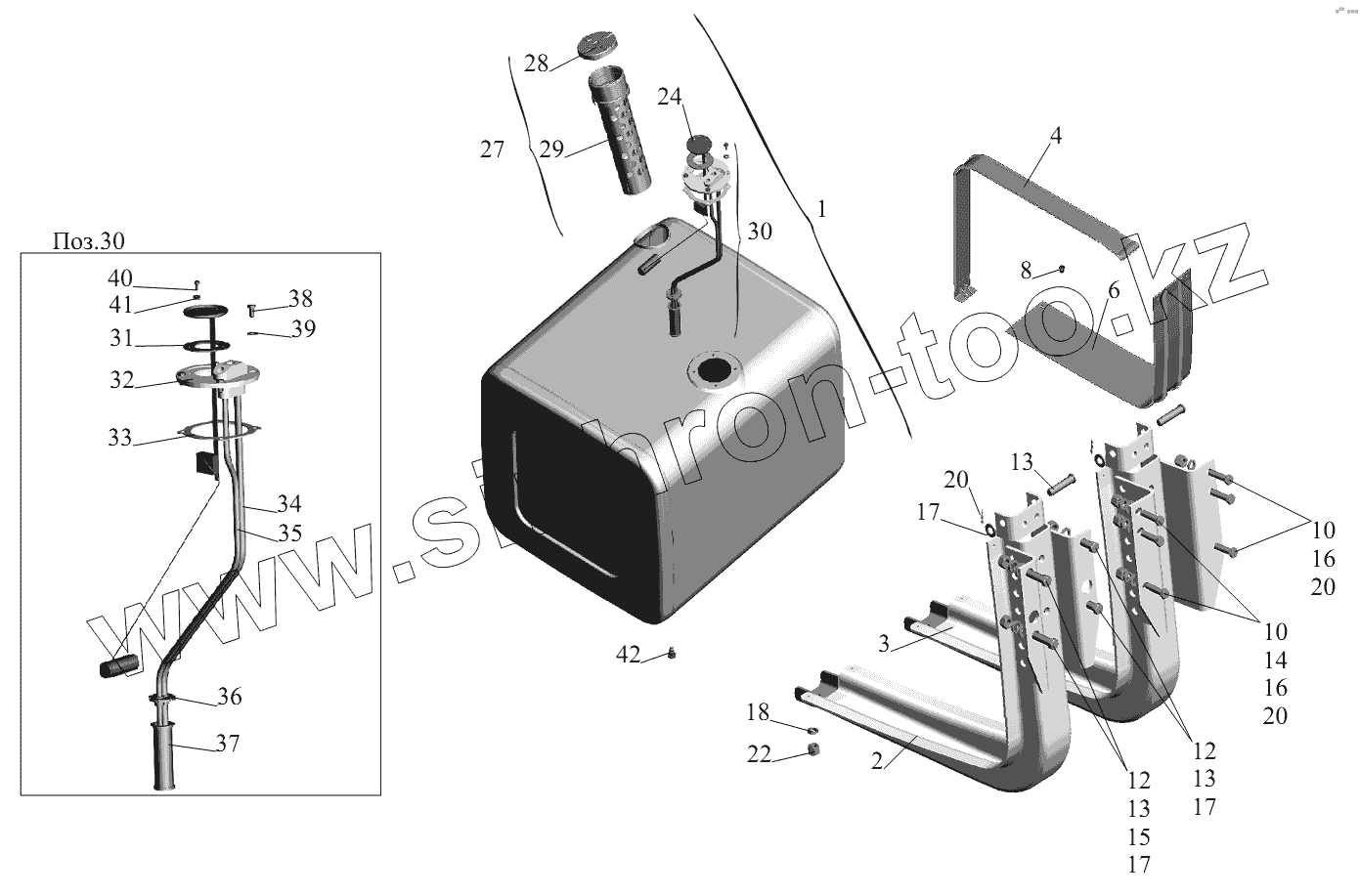 Каталог запасных частей к технике: МАЗ-631236. Крепление топливного бака 650136-1101002