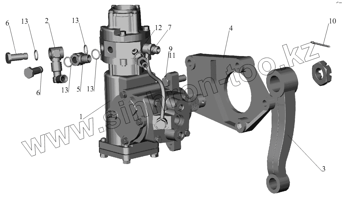 Каталог запасных частей к технике: МАЗ-631236. Механизм рулевой с кронштейном 6418-3400006