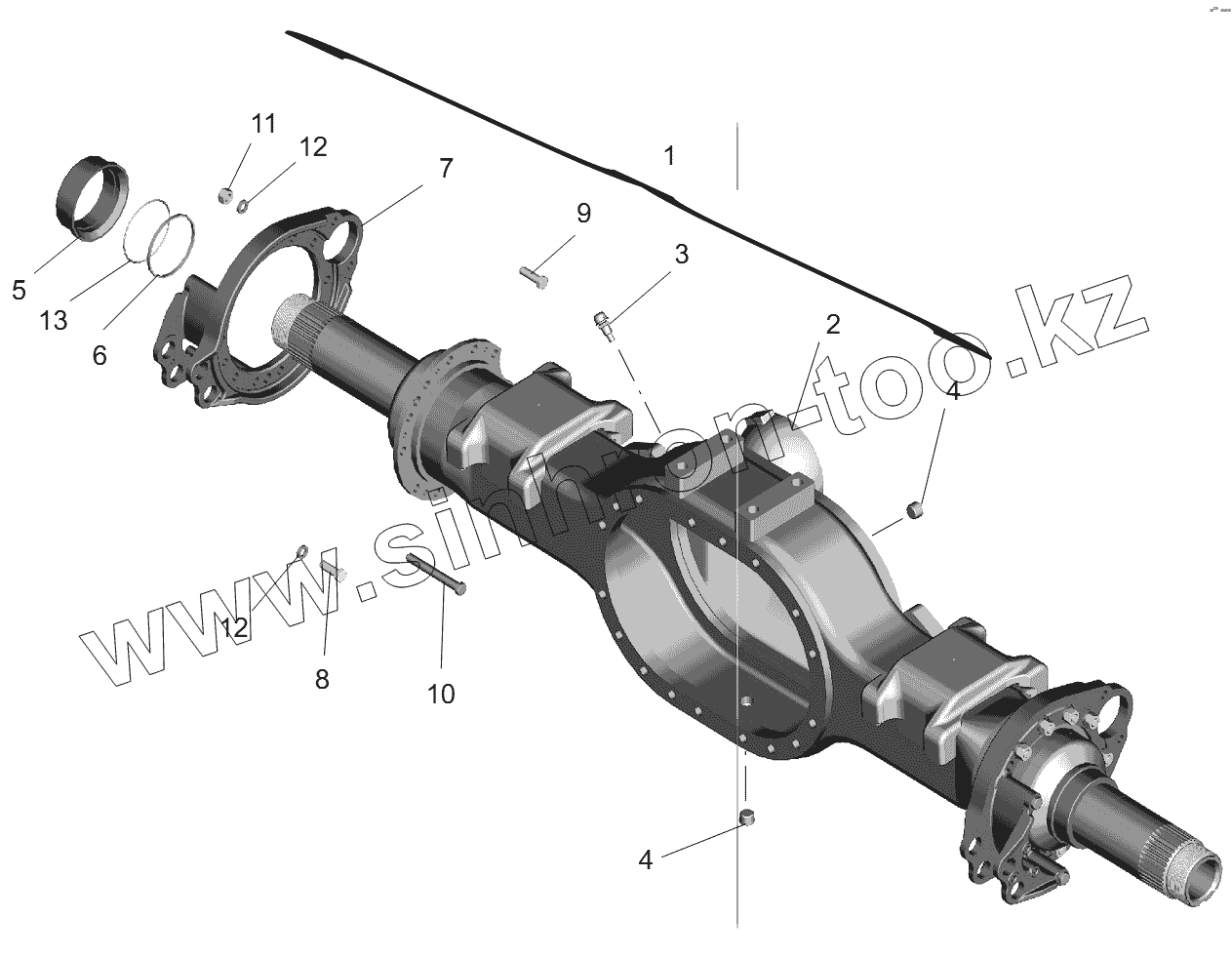 Каталог запасных частей к технике: МАЗ-631236. Мост средний. Картер моста