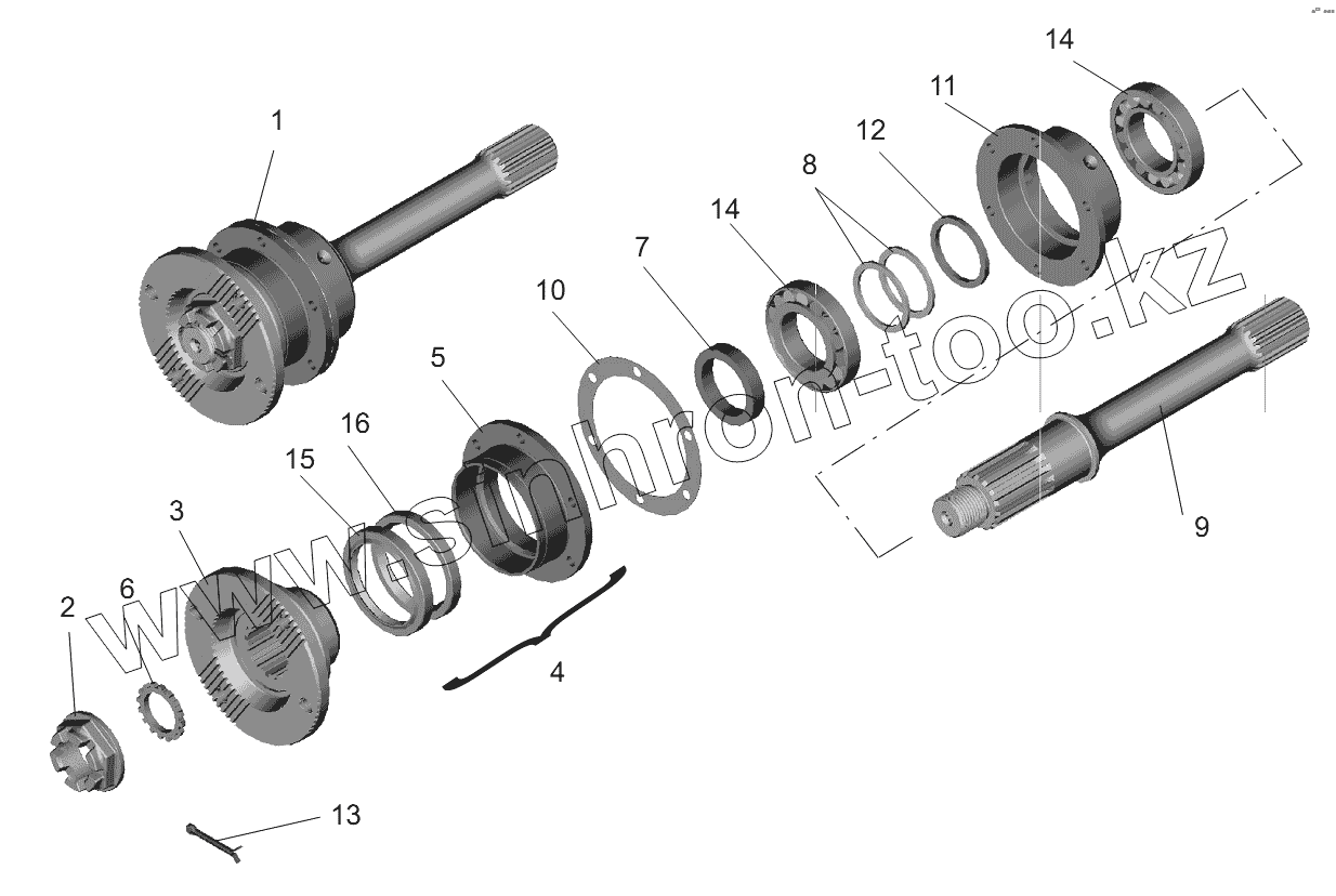 Каталог запасных частей к технике: МАЗ-631236. Мост средний. Вал задний