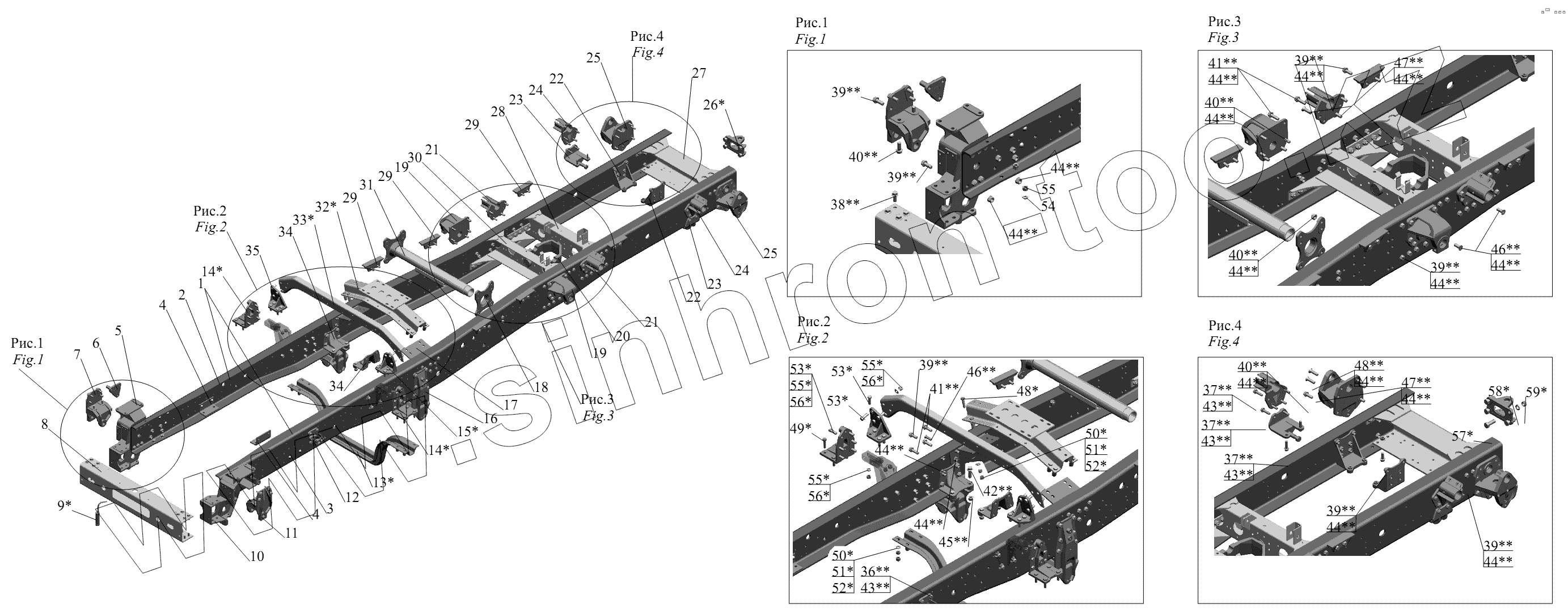 Каталог запасных частей к технике: МАЗ-631236. Рама 555035-2801002