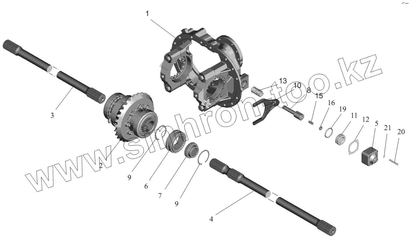 Каталог запасных частей к технике: МАЗ-631236. Редуктор среднего моста. Межколесная блокировка дифференциала