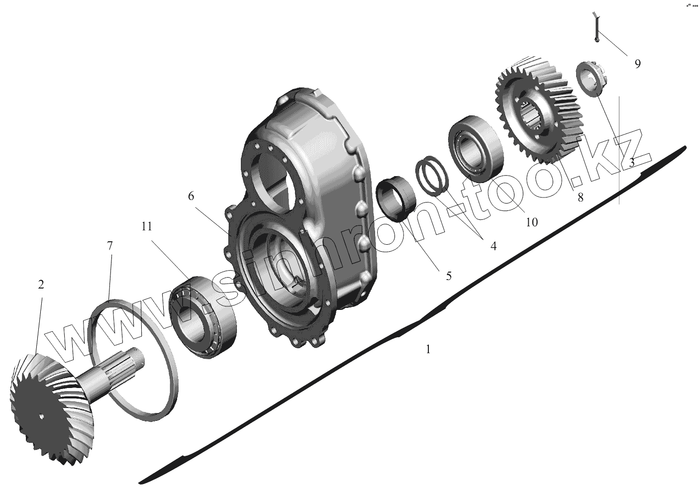 Каталог запасных частей к технике: МАЗ-631236. Редуктор среднего моста. Шестерня ведущая