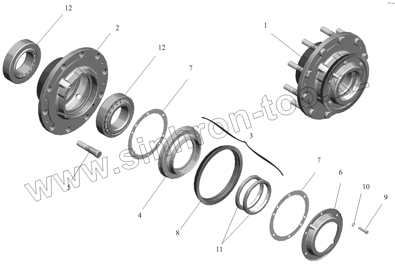 Каталог запасных частей к технике: МАЗ-631236. Ступица заднего моста