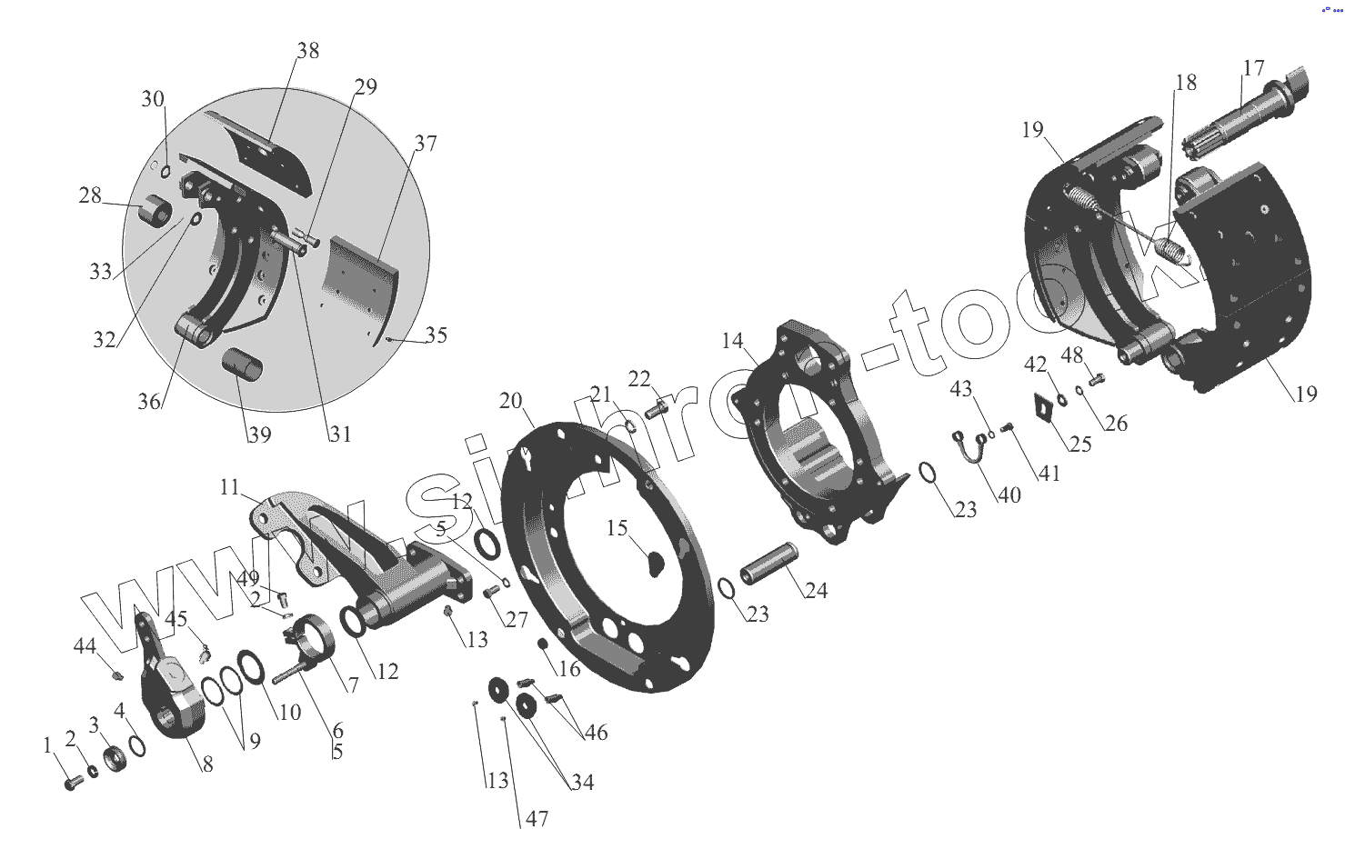 Каталог запасных частей к технике: МАЗ-631236. Тормозной механизм передних колес