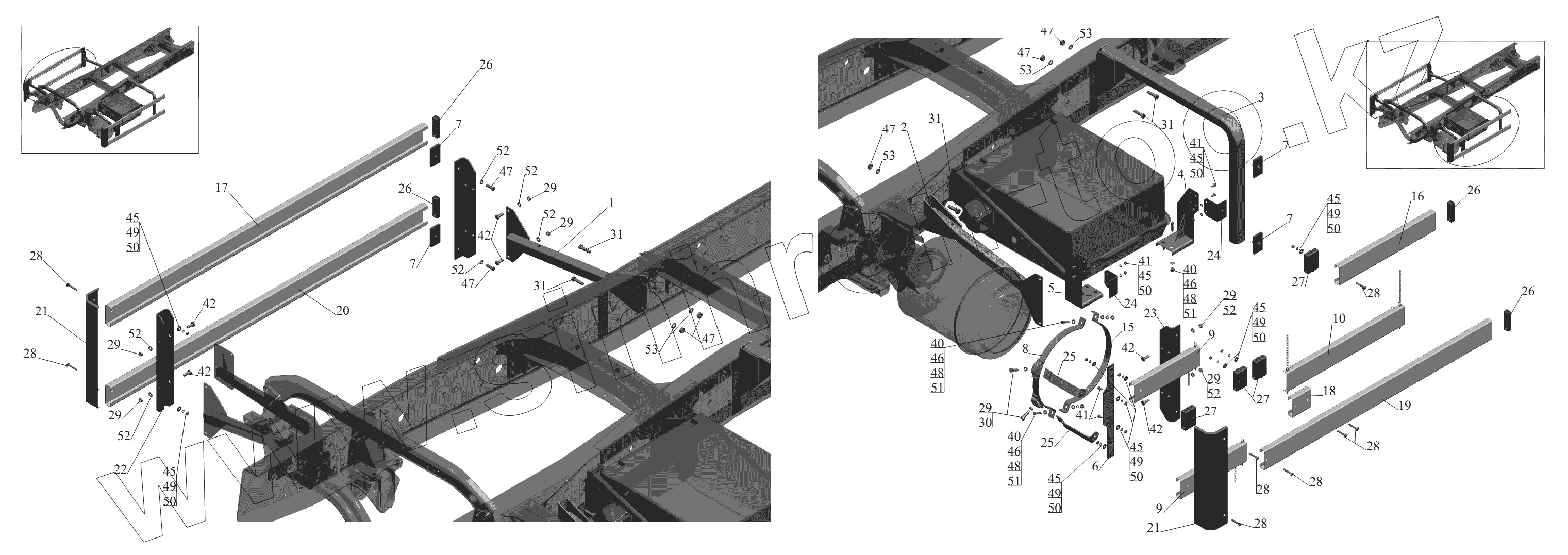 Каталог запасных частей к технике: МАЗ-631236. Установка бокового ограждения 650136-2800040