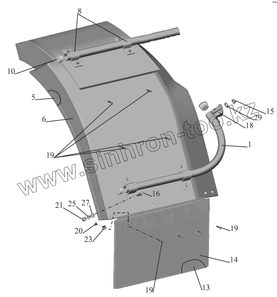 Каталог запасных частей к технике: МАЗ-631236. Установка брызговиков передних колес 555035-8400030-011