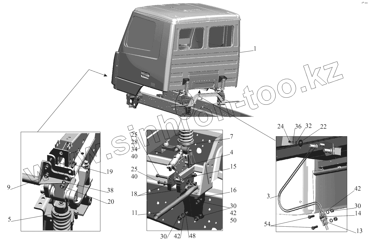 Каталог запасных частей к технике: МАЗ-631236. Установка кабины 555035-5000002-010