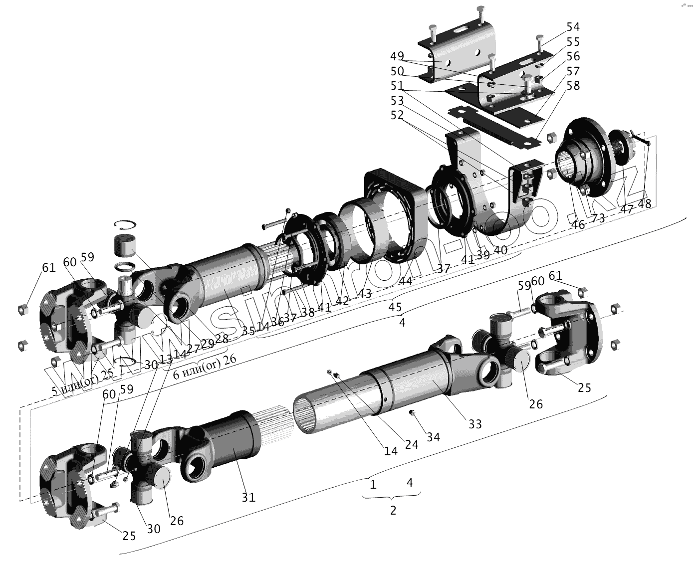 Каталог запасных частей к технике: МАЗ-631236. Установка карданных передач МАЗ-534035, 555035
