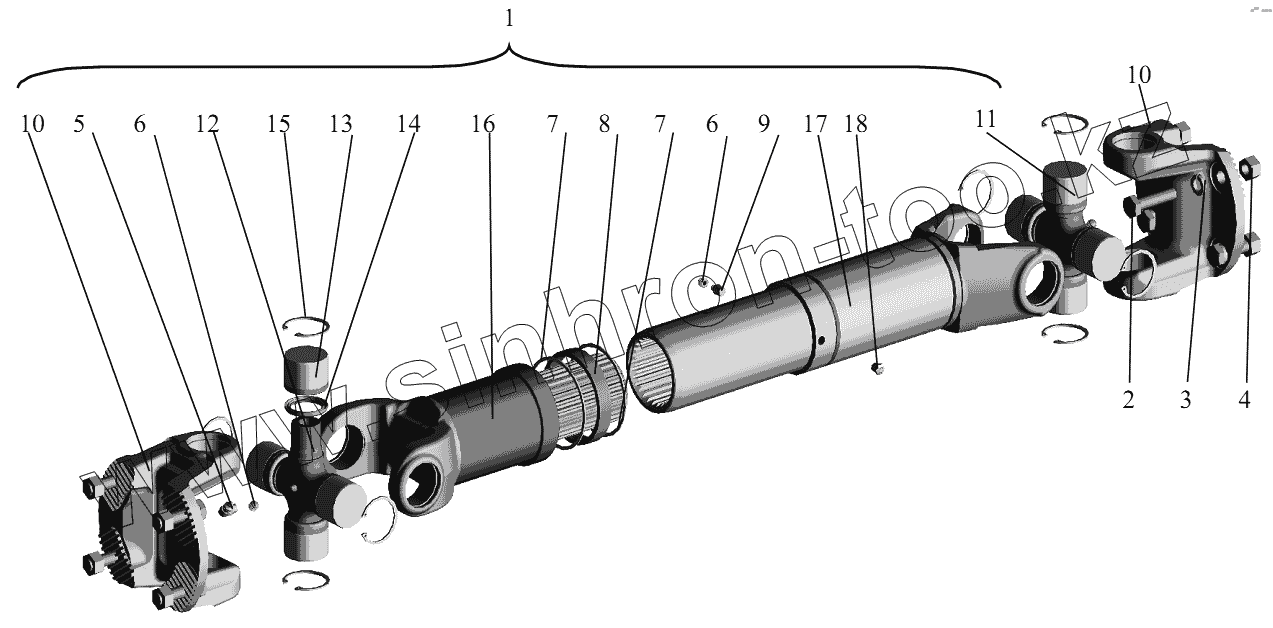 Карданный вал в сборе привода заднего моста