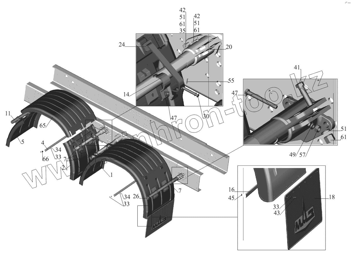 Каталог запасных частей к технике: МАЗ-631236. Установка крыльев 650108-8500048-050