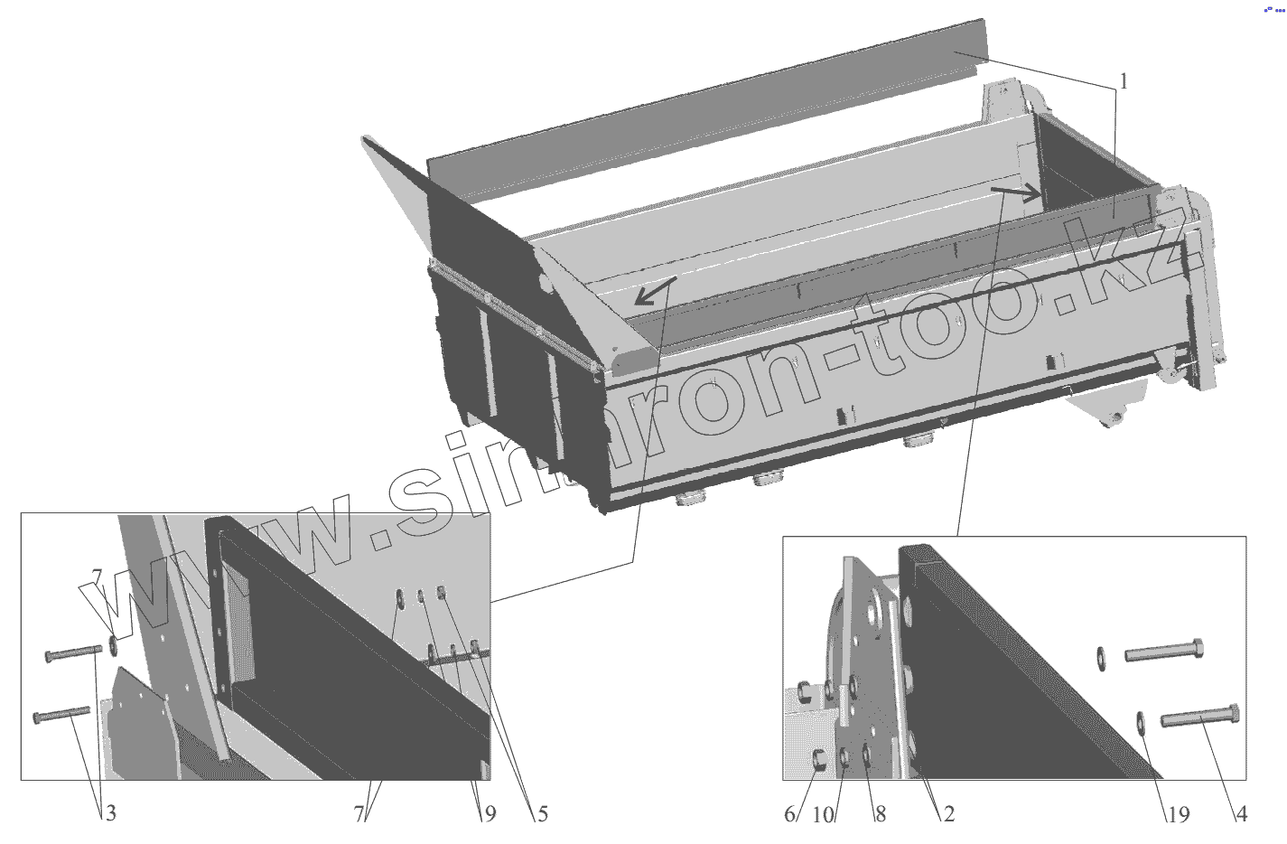 Каталог запасных частей к технике: МАЗ-631236. Установка надставных бортов 5550-8500012