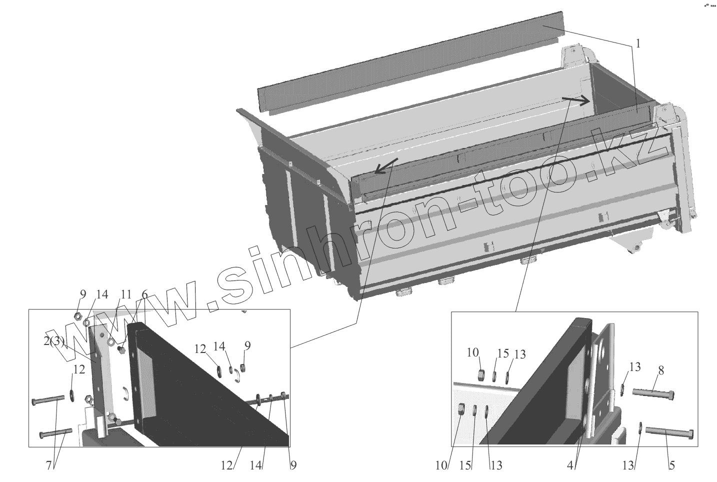 Каталог запасных частей к технике: МАЗ-631236. Установка надставных бортов 5550-8500012-010