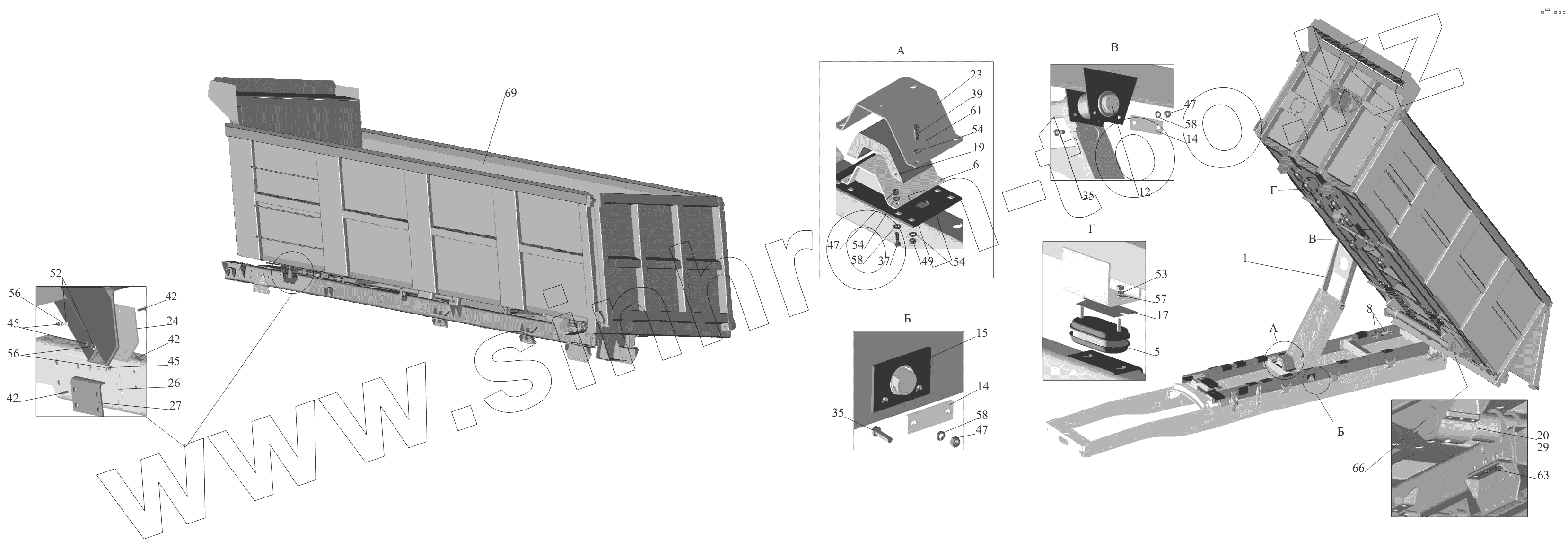 Каталог запасных частей к технике: МАЗ-631236. Установка платформы 650136-8500002