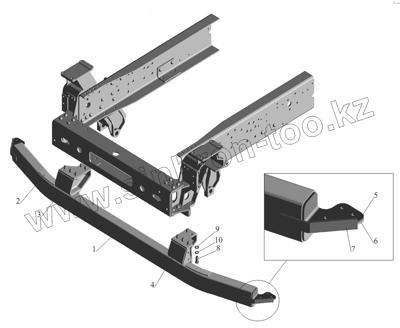 Каталог запасных частей к технике: МАЗ-631236. Установка противоподкатного бруса 6430-2800030-001