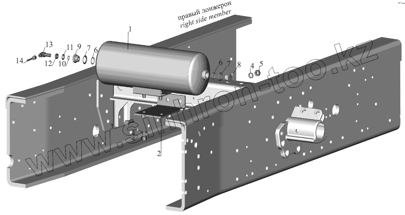 Каталог запасных частей к технике: МАЗ-631236. Установка ресивера и присоединительной арматуры