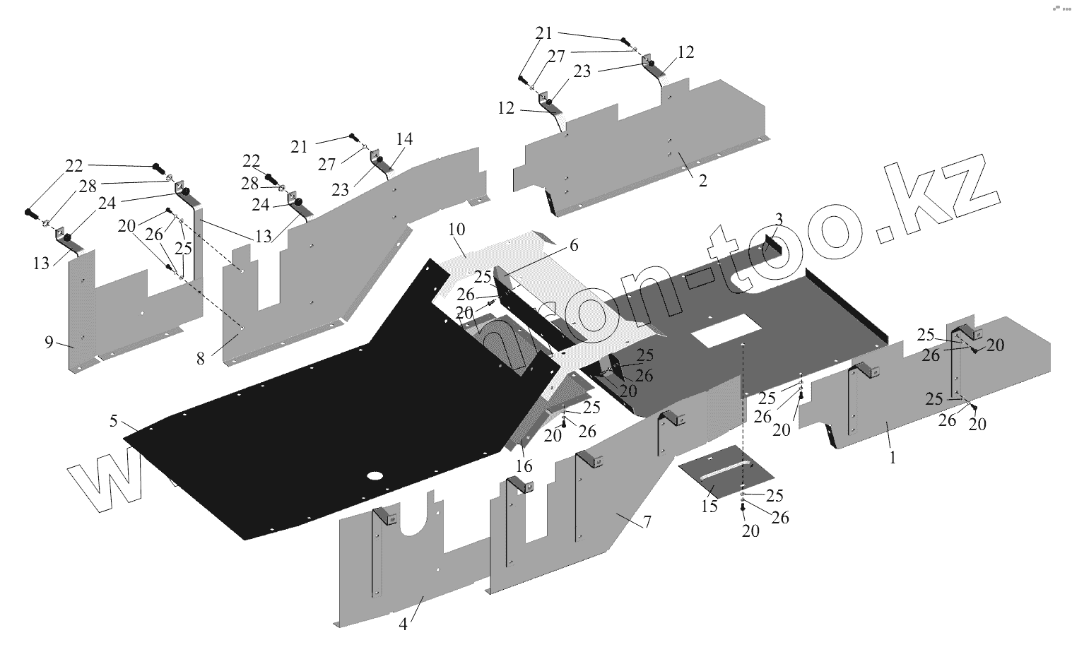 Каталог запасных частей к технике: МАЗ-631236. Установка шумоизоляционных экранов 650136-1061004-005