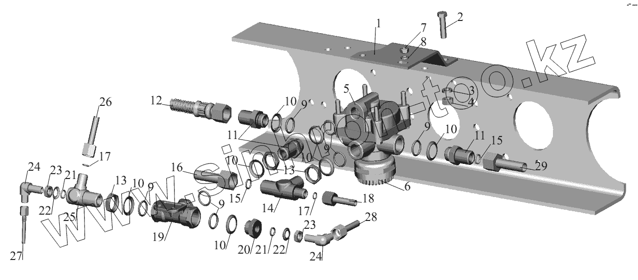 Каталог запасных частей к технике: МАЗ-631236. Установка ускорительного клапана и присоединительной арматуры