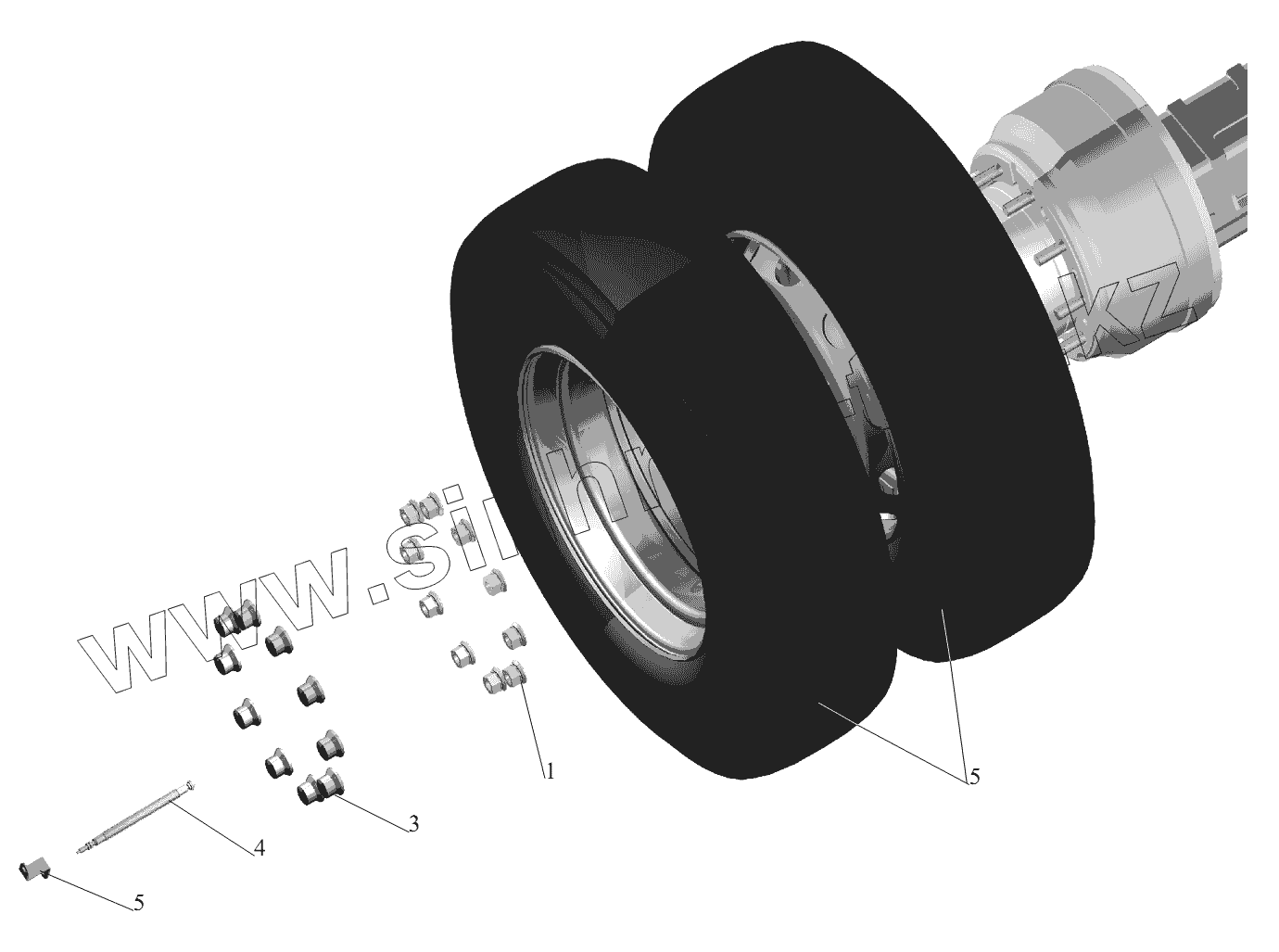 Каталог запасных частей к технике: МАЗ-631236. Установка задних колес