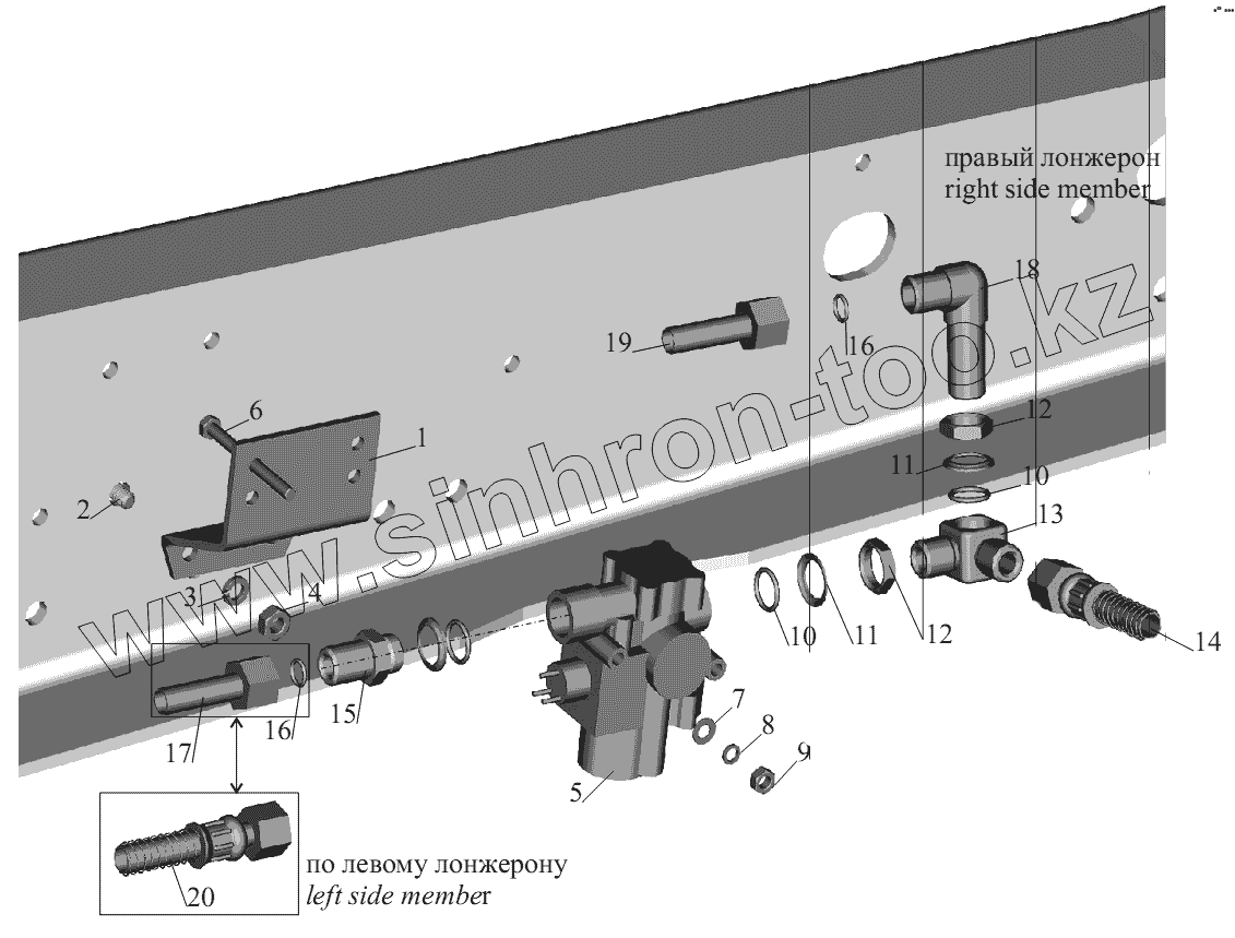 Каталог запасных частей к технике: МАЗ-631236. Установка задних модуляторов и присоединительной арматуры