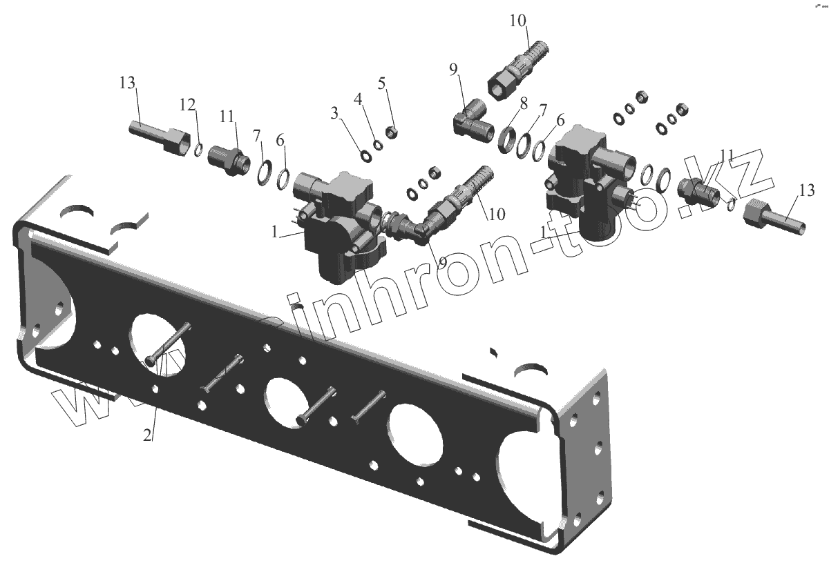 Каталог запасных частей к технике: МАЗ-631236. Установка задних модуляторов и присоединительной арматуры