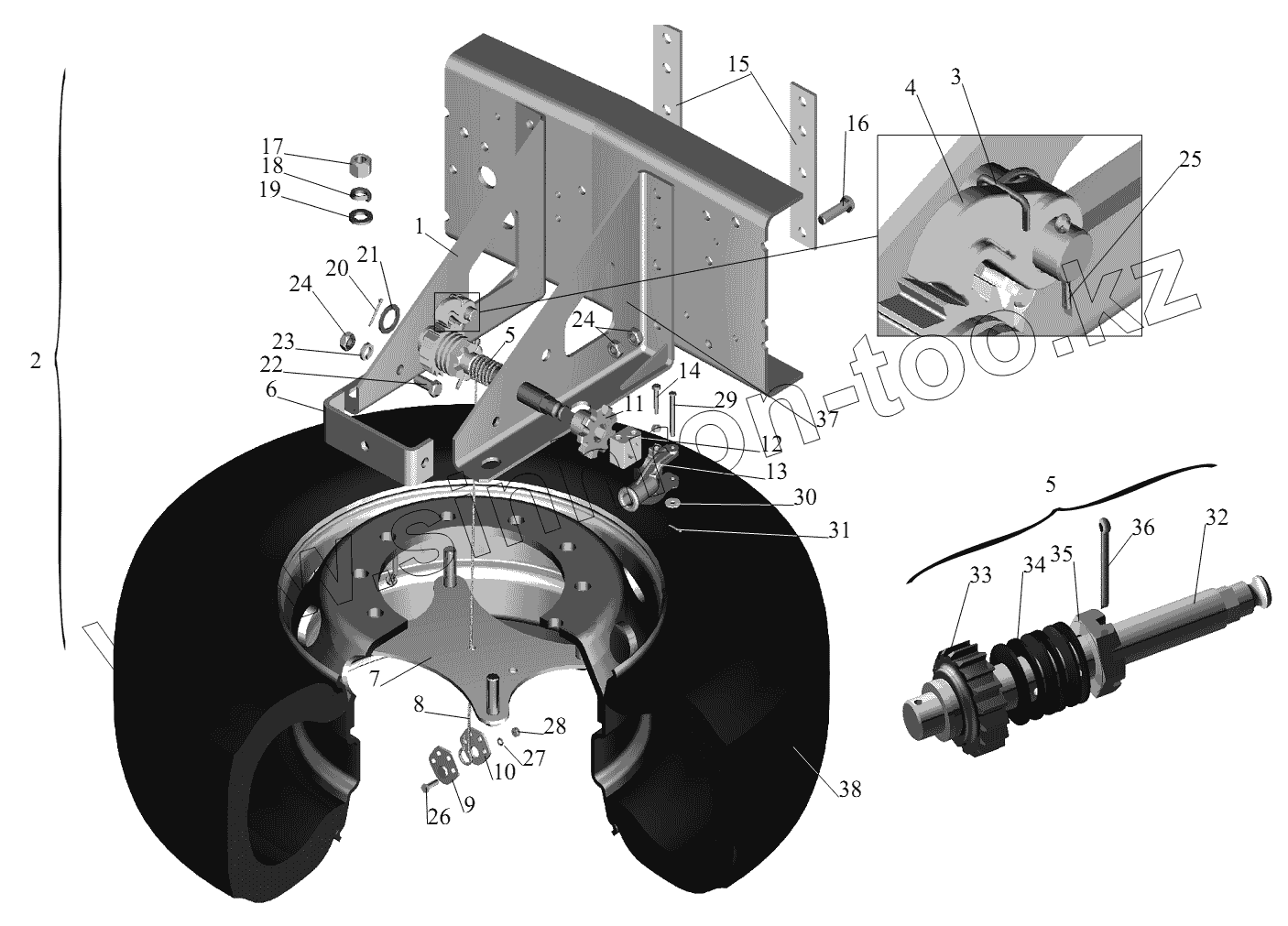 Каталог запасных частей к технике: МАЗ-631236. Установка запасного колеса 5440-3100001-010