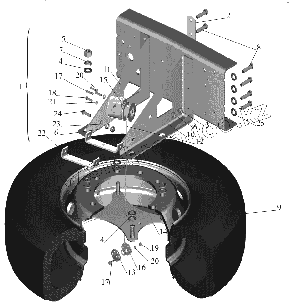Каталог запасных частей к технике: МАЗ-631236. Установка запасного колеса 555005-3100001