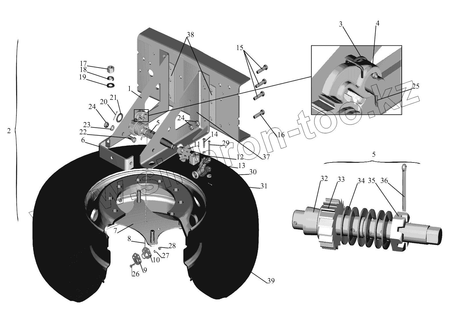 Каталог запасных частей к технике: МАЗ-631236. Установка запасного колеса 6312-3100001