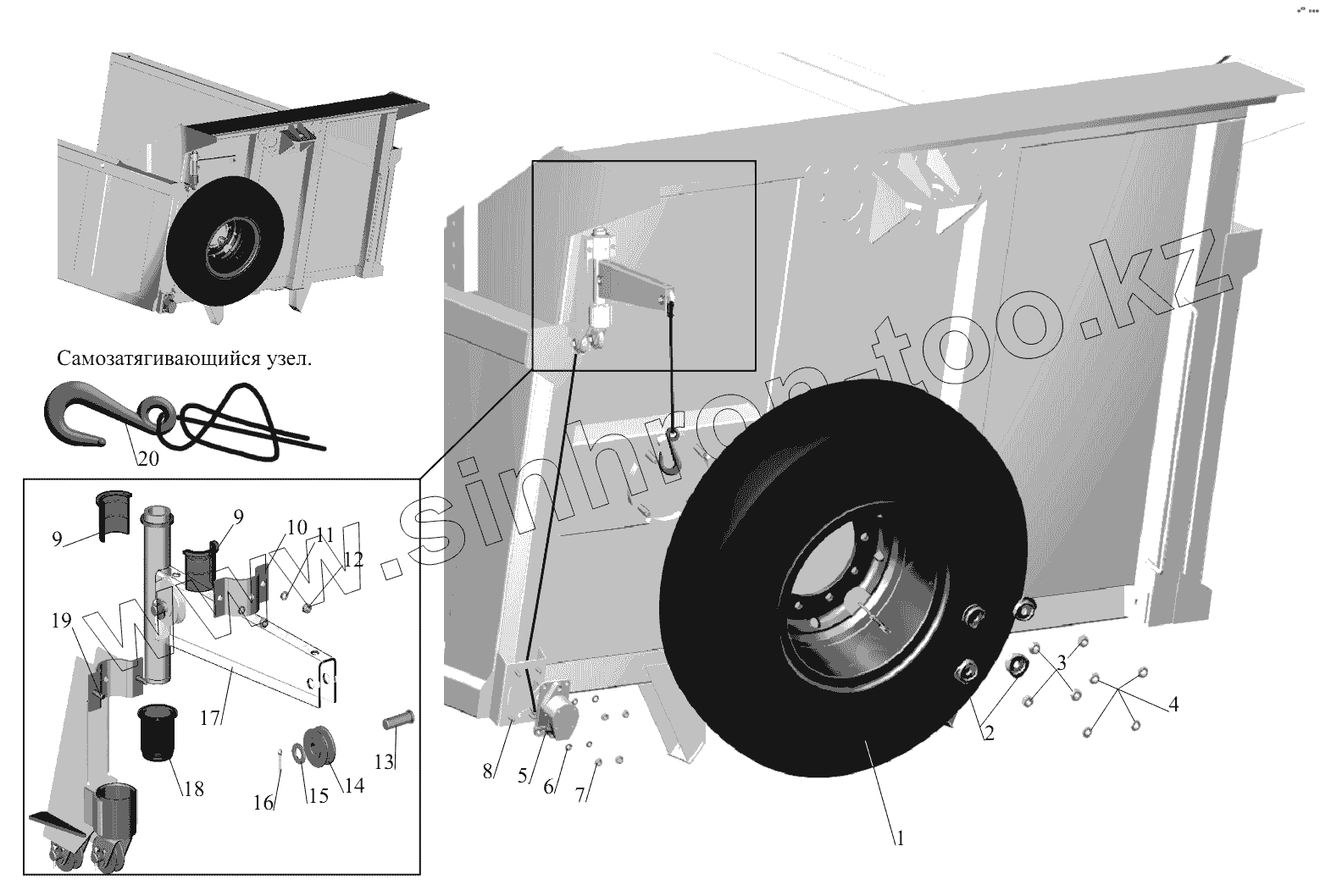 Каталог запасных частей к технике: МАЗ-631236. Установка запасного колеса 650136-3100001