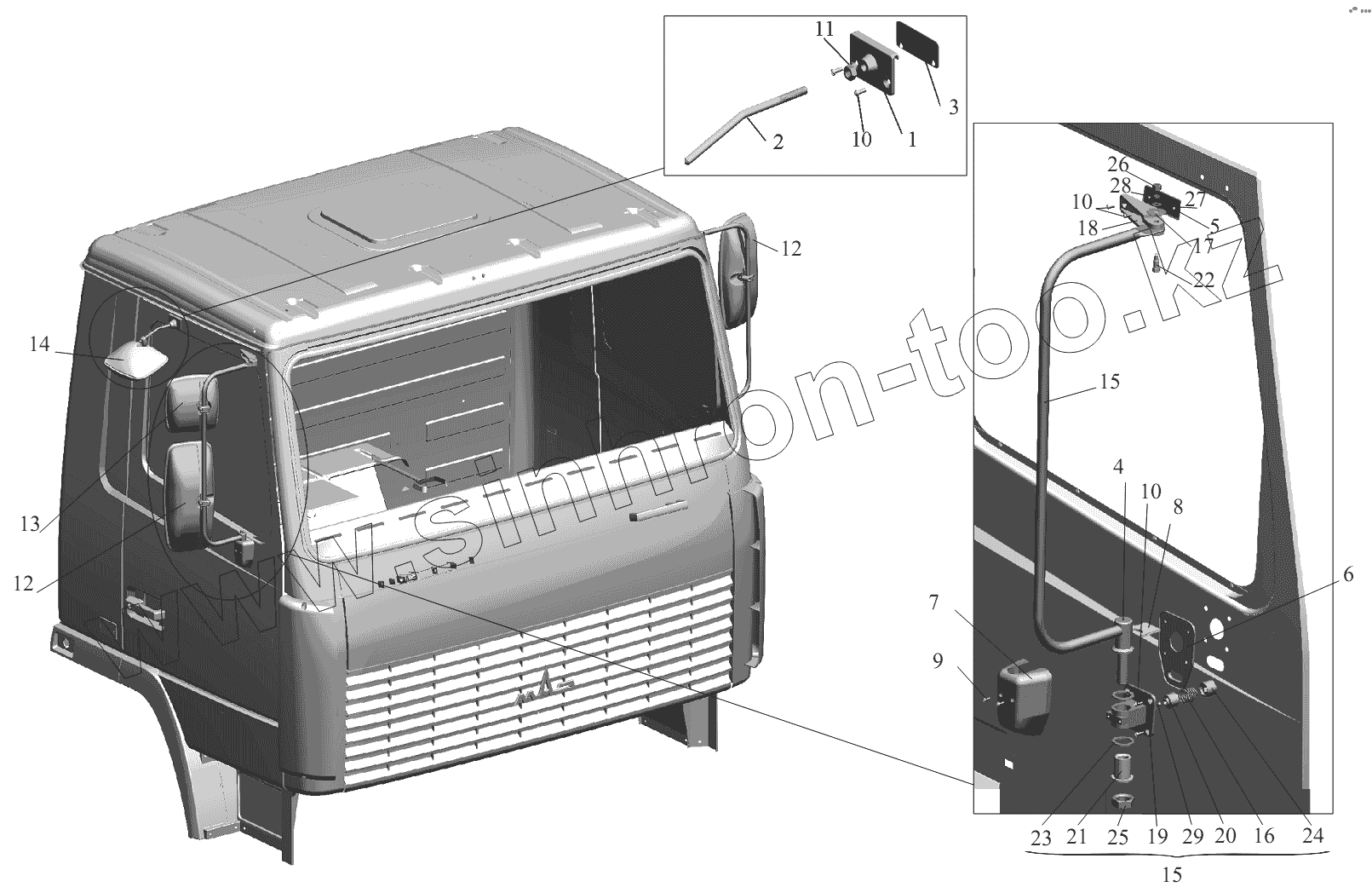 Каталог запасных частей к технике: МАЗ-631236. Установка зеркал 6430-8200005
