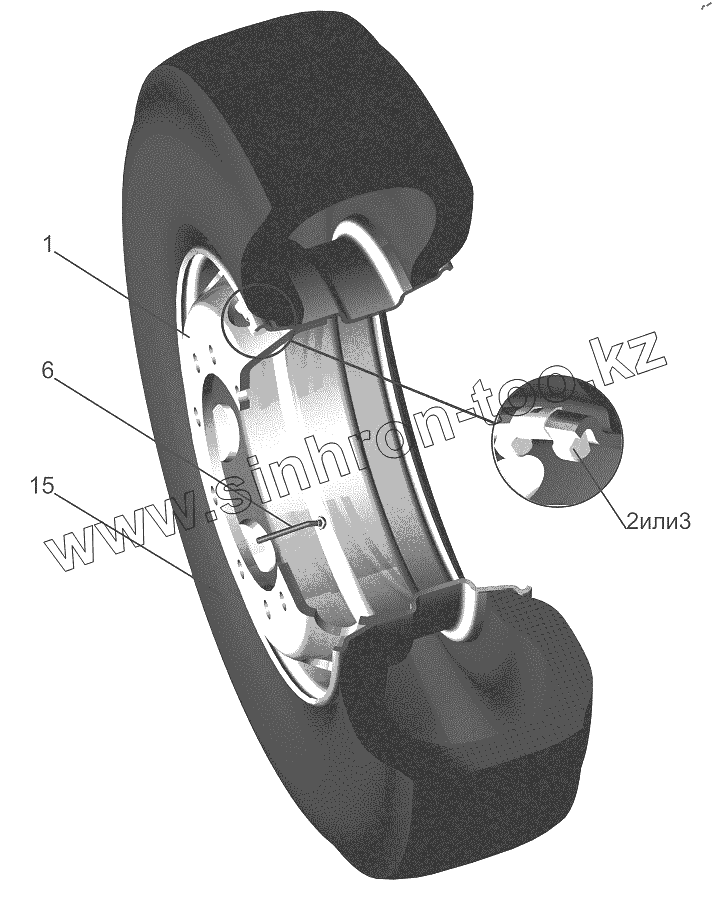 Каталог запасных частей к технике: МАЗ-6312B9-0008425-012. Колесо и шина