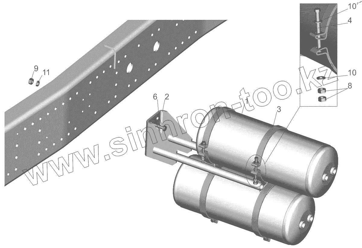 Каталог запасных частей к технике: МАЗ-6312B9-0008425-012. Крепление ресиверов 650119-3513006