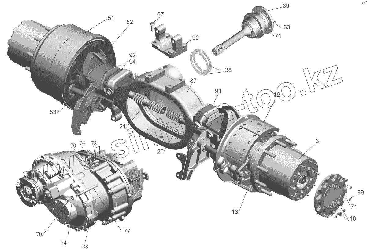 Каталог запасных частей к технике: МАЗ-6312B9-0008425-012. Мост средний