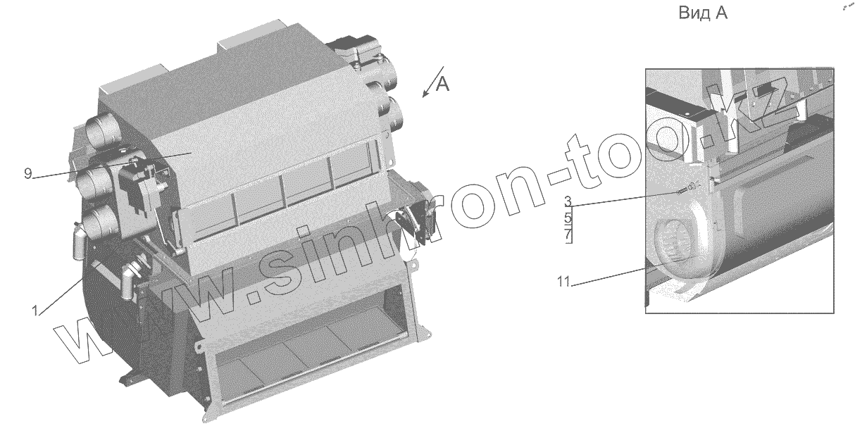 Каталог запасных частей к технике: МАЗ-6312B9-0008425-012. Отопитель 631019-8101010