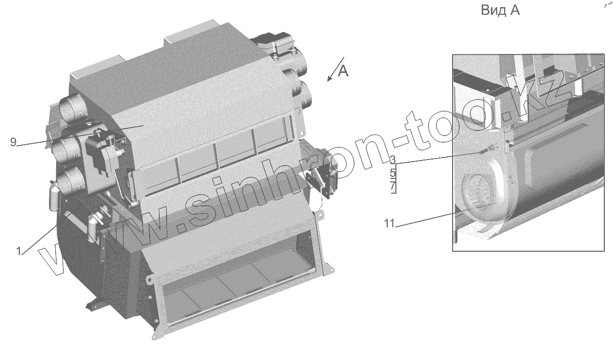 Каталог запасных частей к технике: МАЗ-6312B9-0008425-012. Отопитель 643008-8101010