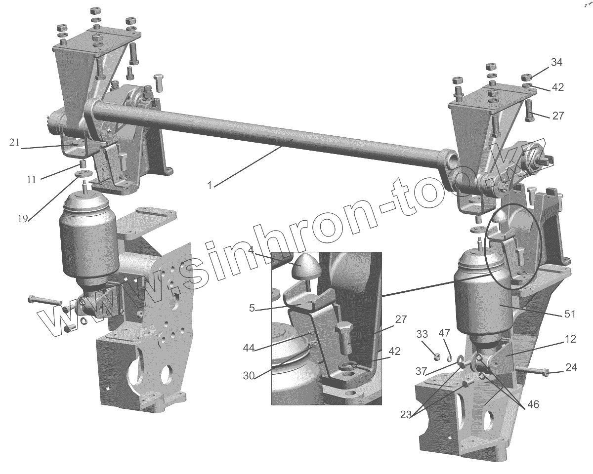 Каталог запасных частей к технике: МАЗ-6312B9-0008425-012. Переднее подрессоривание