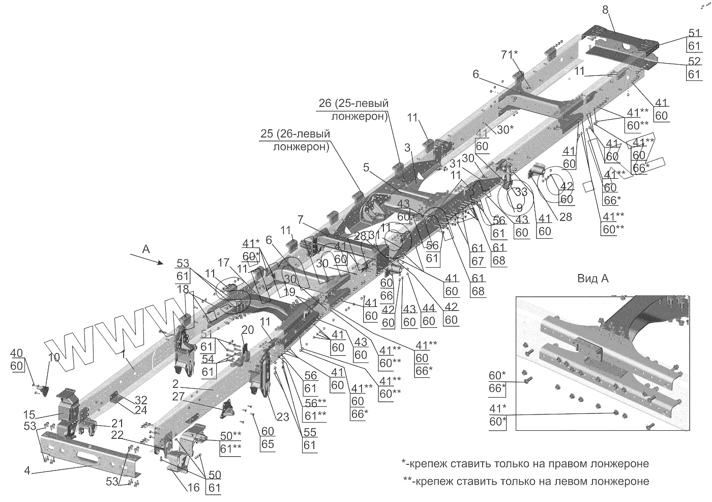 Каталог запасных частей к технике: МАЗ-6312B9-0008425-012. Рама 6312B9-2801002-022