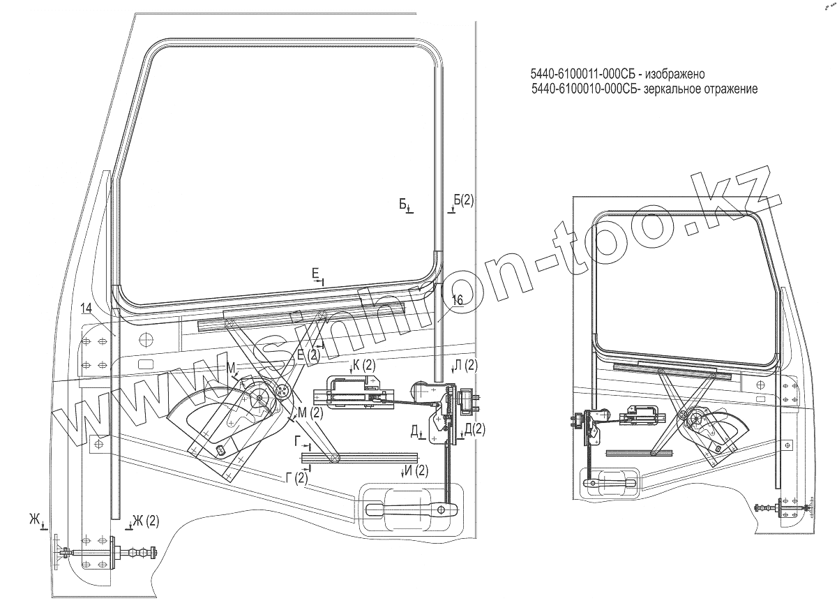 Каталог запасных частей к технике: МАЗ-6312B9-0008425-012. Установка дверной арматуры