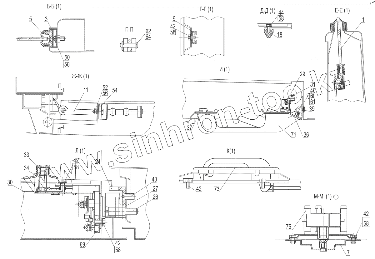 Каталог запасных частей к технике: МАЗ-6312B9-0008425-012. Установка дверной арматуры