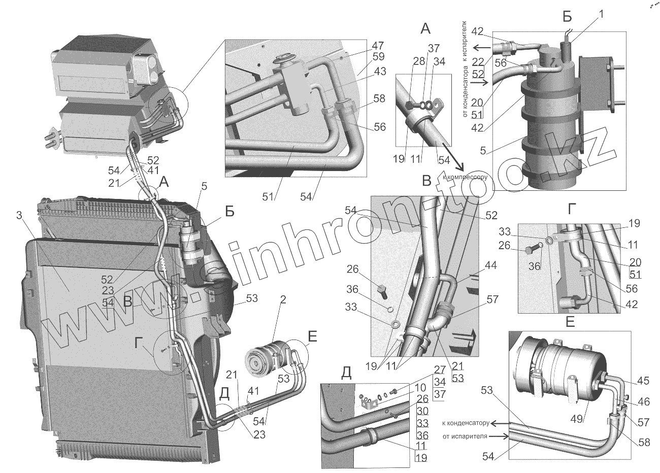 Каталог запасных частей к технике: МАЗ-6312B9-0008425-012. Установка кондиционера 5440B9-8100004