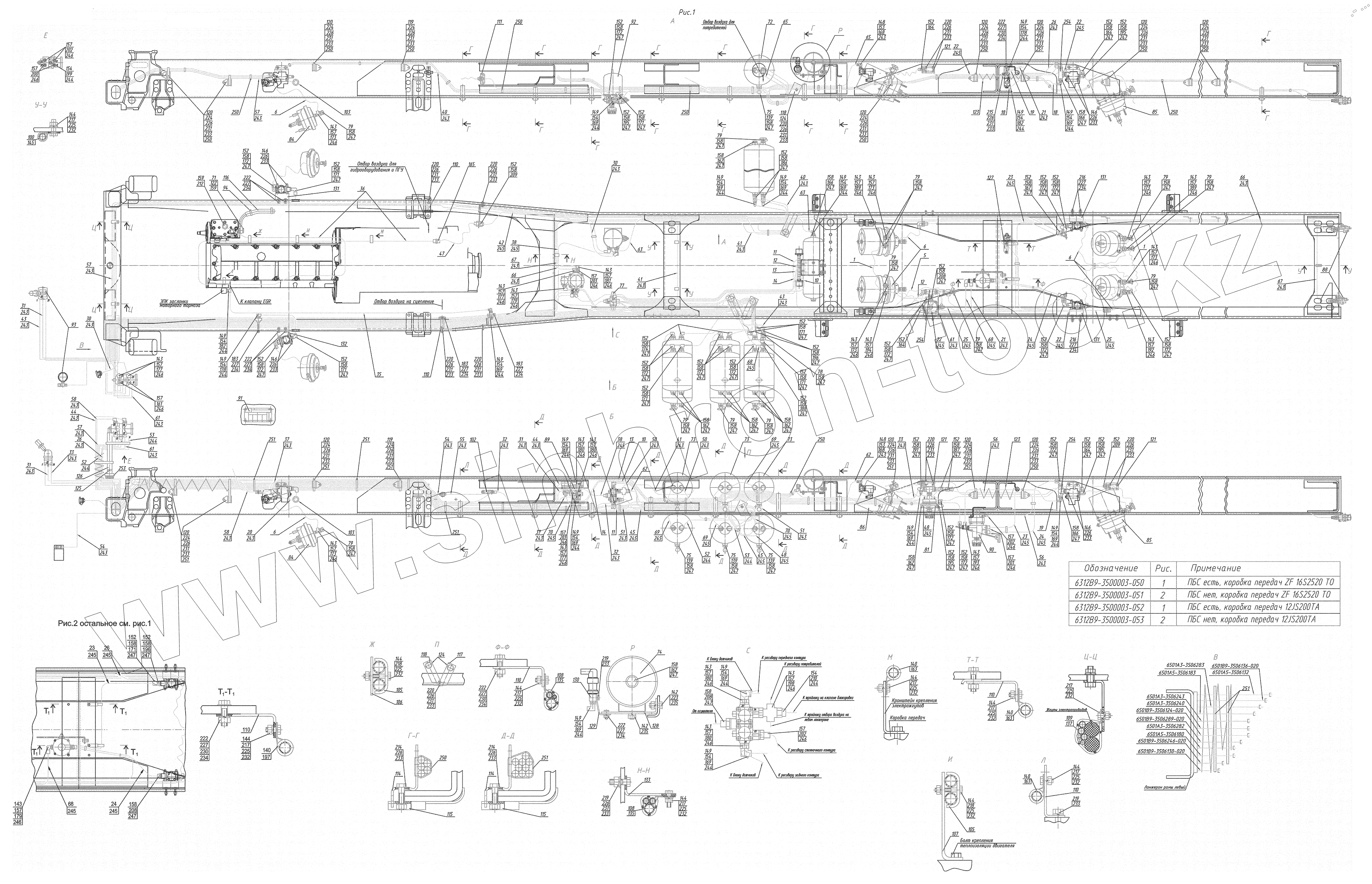 Каталог запасных частей к технике: МАЗ-6312B9-0008425-012. Установка пневмотормозов