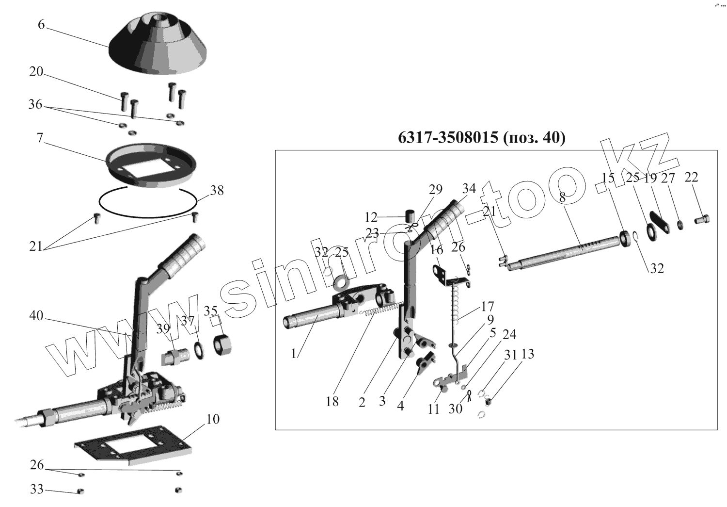 Каталог запасных частей к технике: МАЗ-631705. Крепление рычага стояночного тормоза 6317-3508010