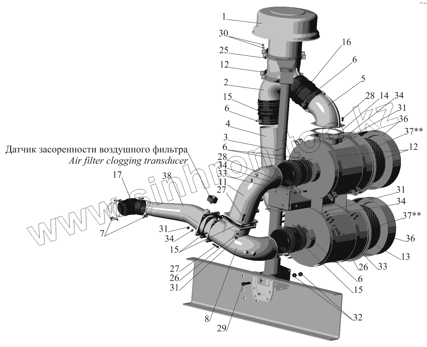Каталог запасных частей к технике: МАЗ-631705. Крепление воздушного фильтра 651705-1109002