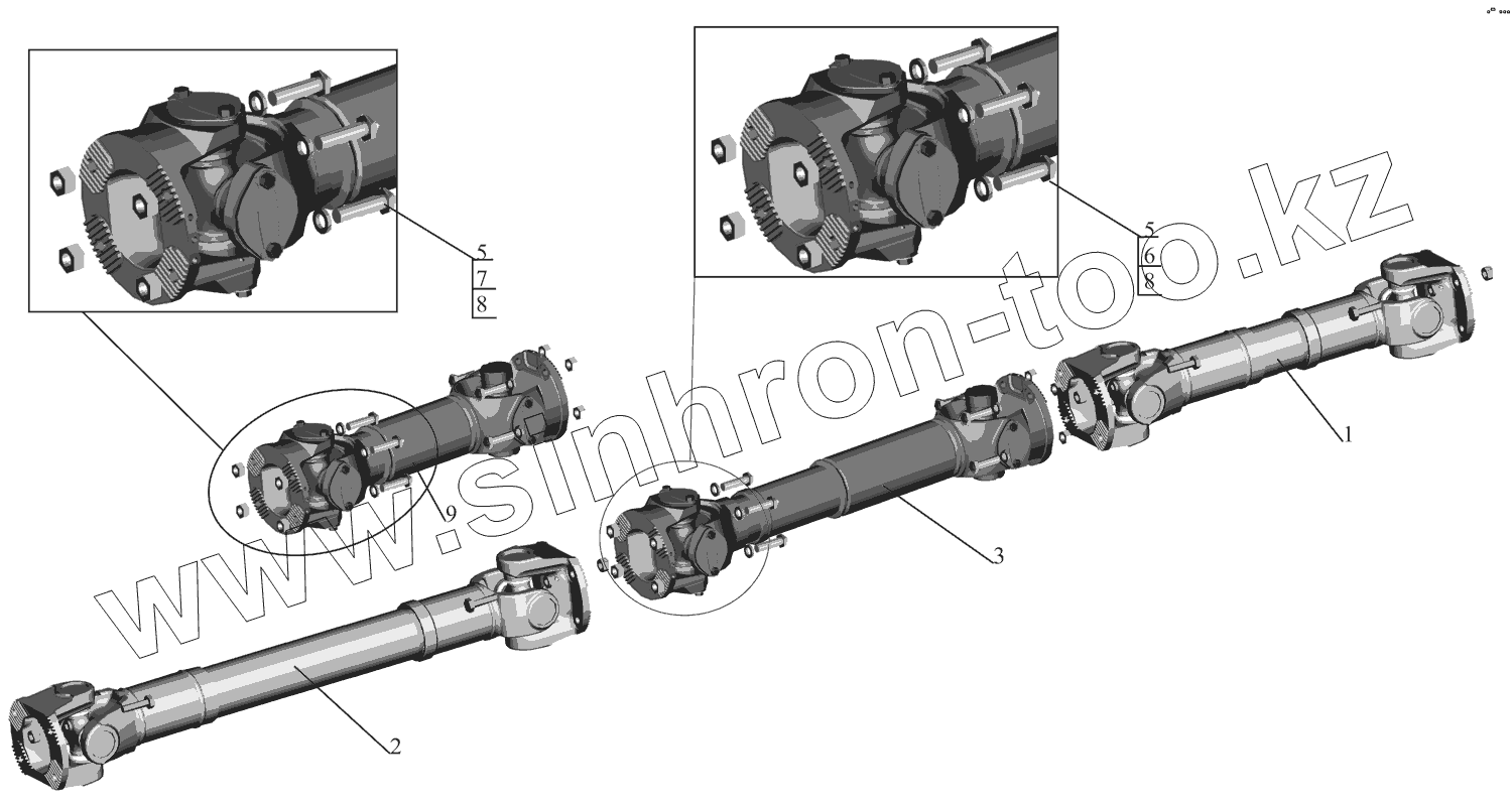 Каталог запасных частей к технике: МАЗ-631705. Установка карданных валов 642505-2200000-010