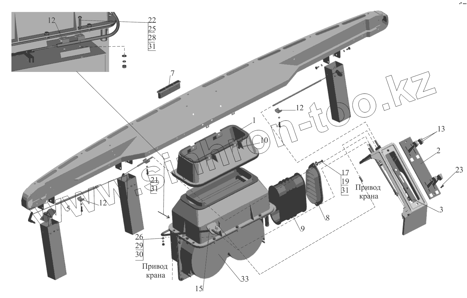 Каталог запасных частей к технике: МАЗ-631705. Установка отопителя 642217-8100001