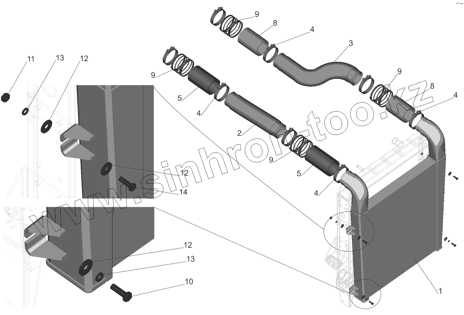 Каталог запасных частей к технике: МАЗ-631705. Установка системы охлаждения воздуха 642290-1300040-001
